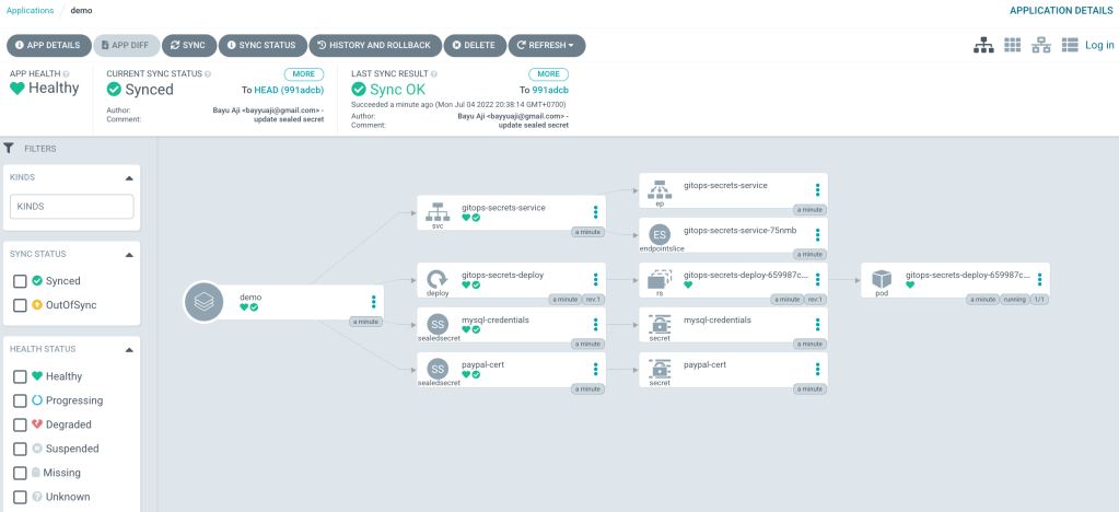 Sampai pada langkah ini, anda sudah berhasil mengimplementasikan kredensial atau secret Kubernetes tanpa bertentangan dengan GitOps 🙂